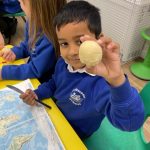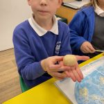 Using a wonderfully creative approach, the class explored the equator, longitude, and latitude. They transformed a piece of playdough into a model Earth, carefully adding grid lines to demonstrate how these imaginary lines help us locate places around the world. By physically mapping out latitude lines, they learned how we can determine how far north or south a location might be.