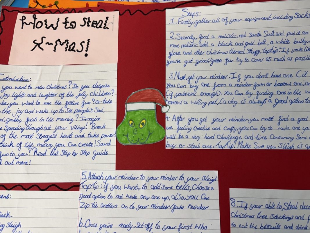 Class 1 have been exploring the festive magic of “How the Grinch Stole Christmas”, which sparked an exciting journey into instructional writing.